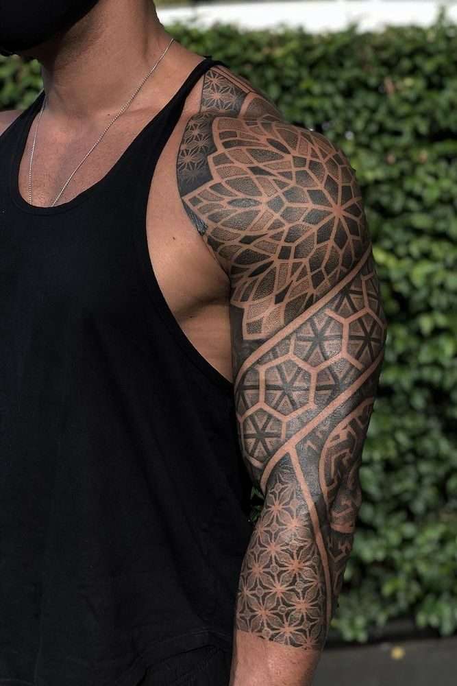 Black ink, symbolic patterns tied to cultural heritage.Intricate patterns with personal or spiritual meaning.