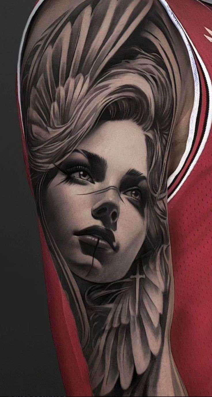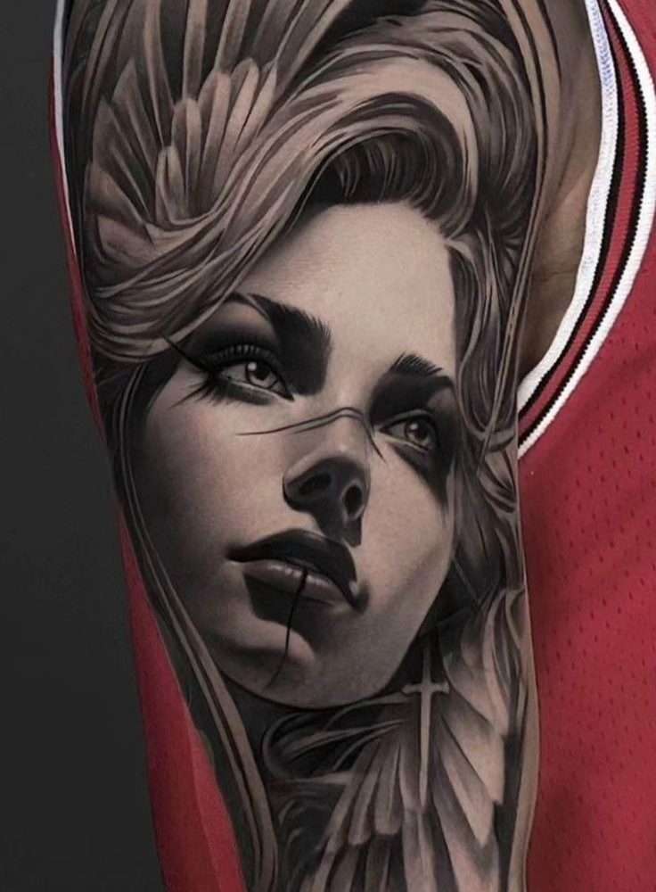 Bold lines, classic imagery (roses, daggers, anchors).Like Traditional but with more color variety, detail, and depth.